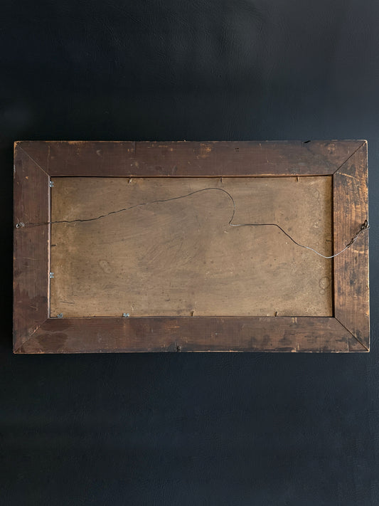 Antique Pastoral Landscape Painting in Deep Mahogany Frame
